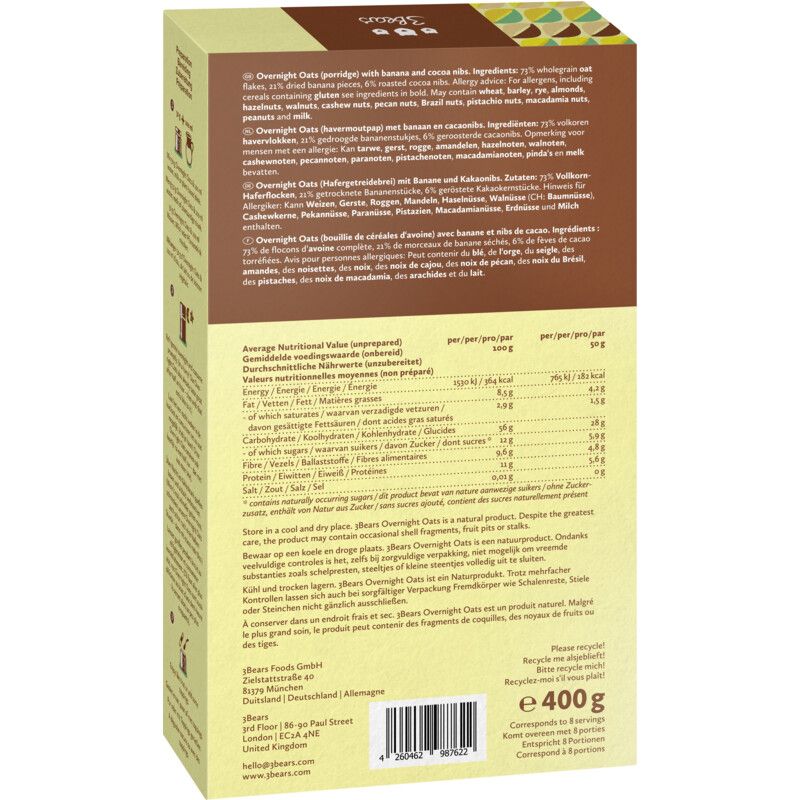 3Bears Overnight oats banana split