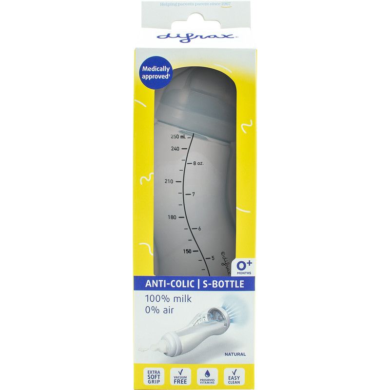 Difrax Anti-colic s-fles natural 0+ mnd 250 ml