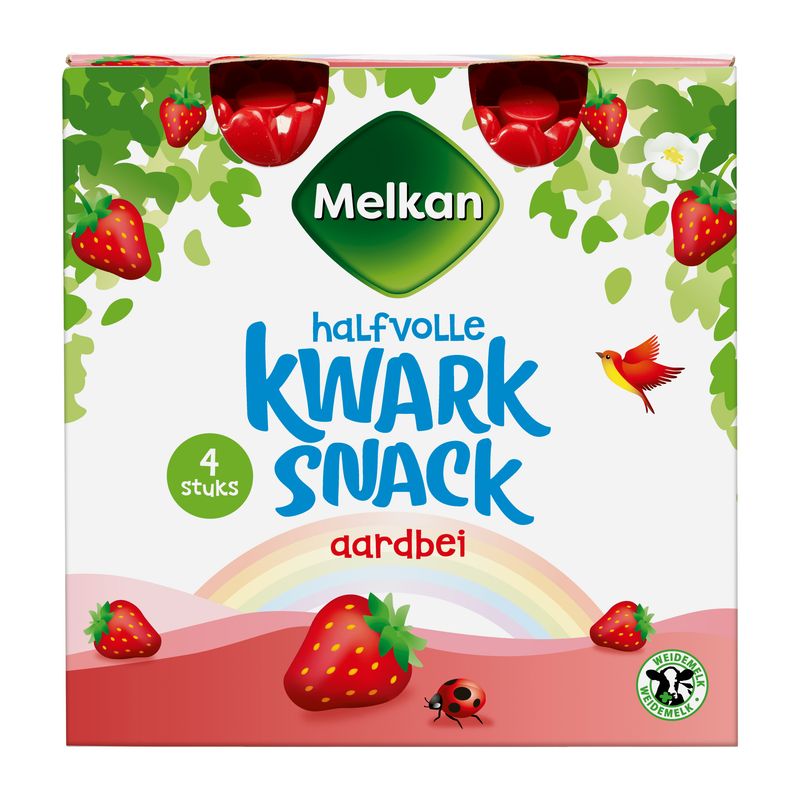 Melkan Toetiemonster Zuivelsnack Halfvolle kwark aardbei 4s
