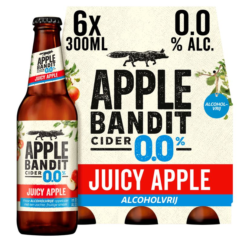 Apple Bandit - Juicy Apple Cider - 0.0% Alcoholvrij - Fles - 6 x 300ML