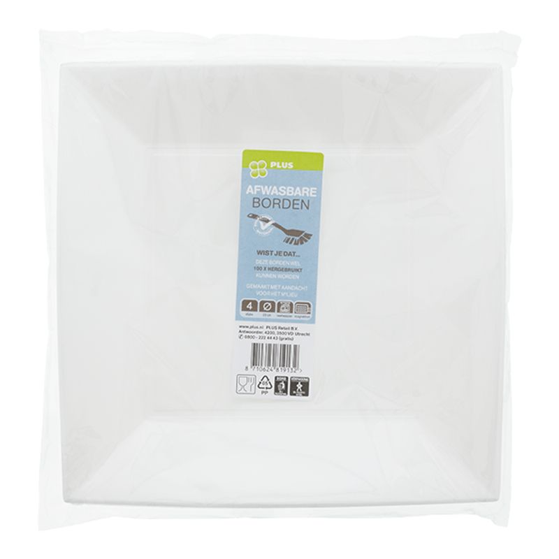 PLUS Bord herbruikbaar vierkant 23cm