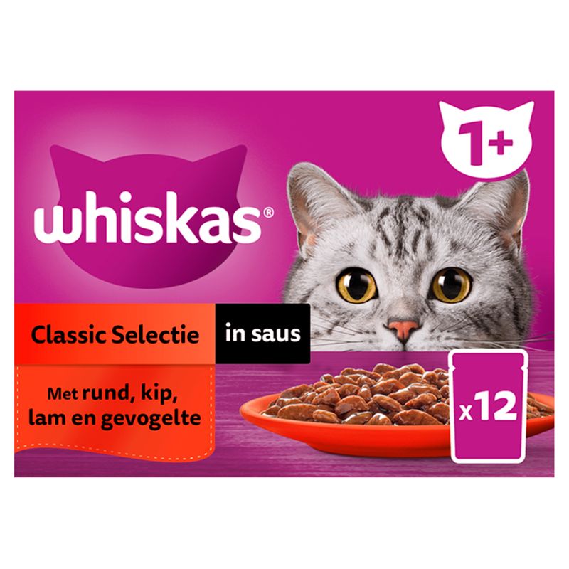 Whiskas 1+ Natvoer - Classic - Selectie in saus - maaltijdzakjes 4 x 12 x 85g