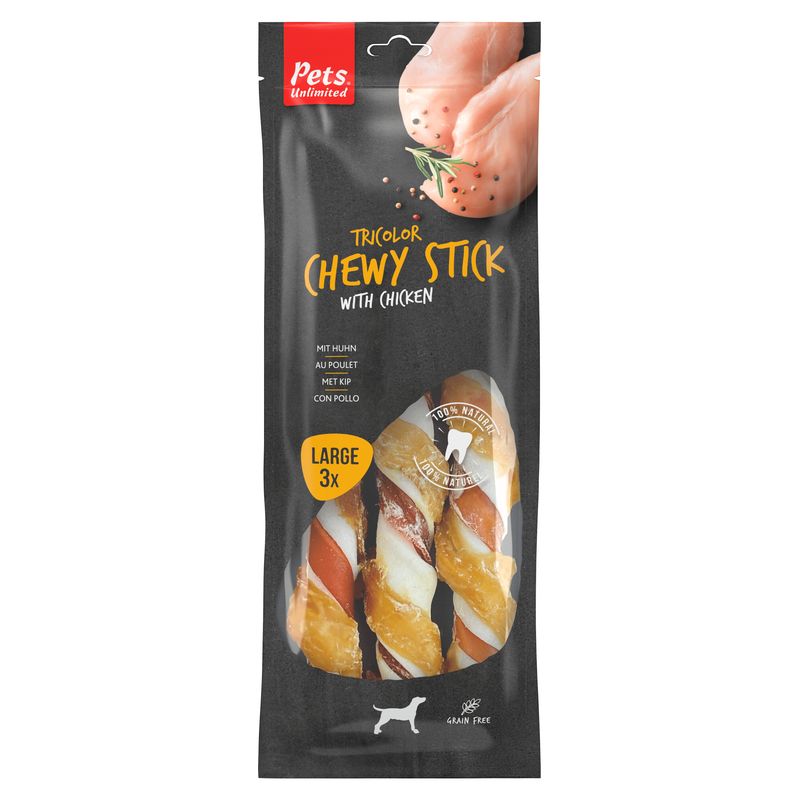 Pets Unlimited Tricolor chewy stick with chicken large