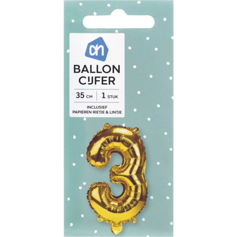 AH Folieballon nr 3 goud 36cm