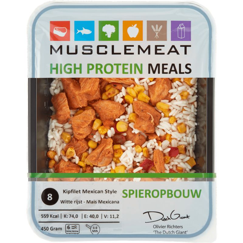 Muscle Meat High Protein Meals Kipfilet Mexican Style Witte Rijst - Mais Mexicana 450g