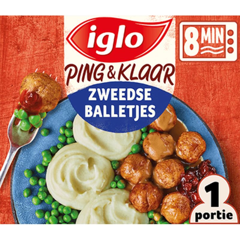 Iglo Ping & Klaar Zweedse Balletjes met aardappelpuree, erwten en rode bosbessencoulis 400g