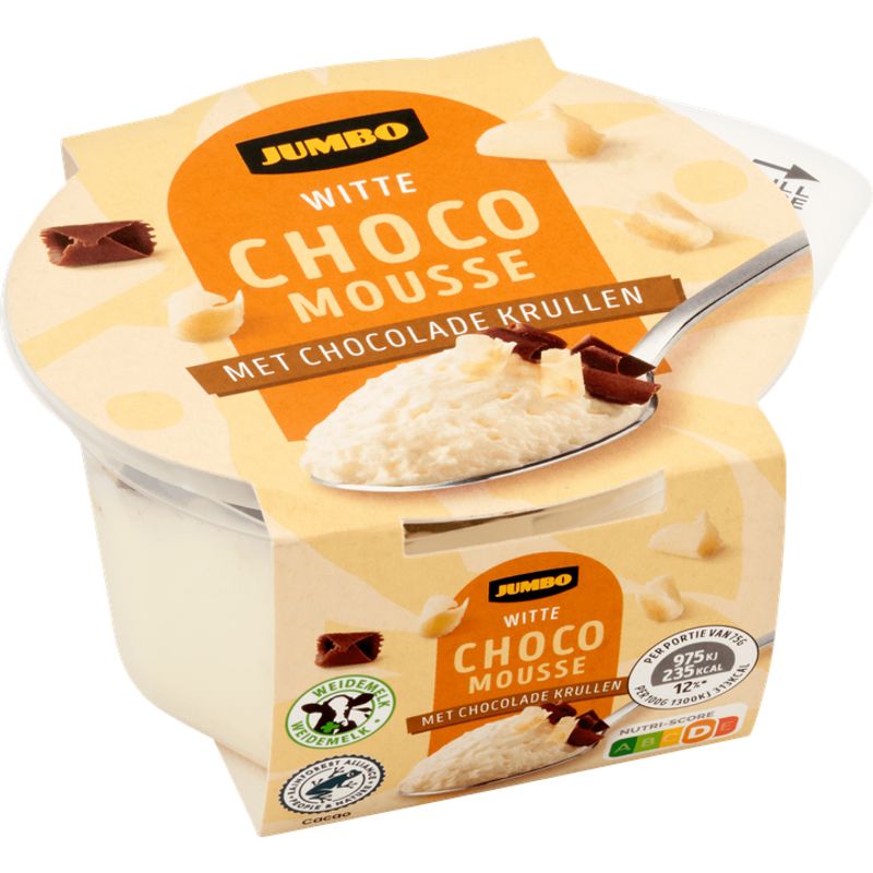 Jumbo Witte Choco Mousse met Chocolade Krullen 75g