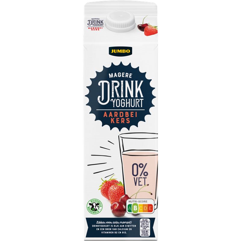 Jumbo Drinkyoghurt Aardbei/Kers 0% Vet 1L