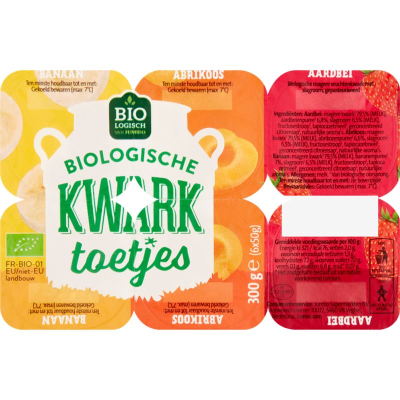 Jumbo Kwark Toetjes Banaan Abrikoos Aardbei Biologisch 6 x 50g