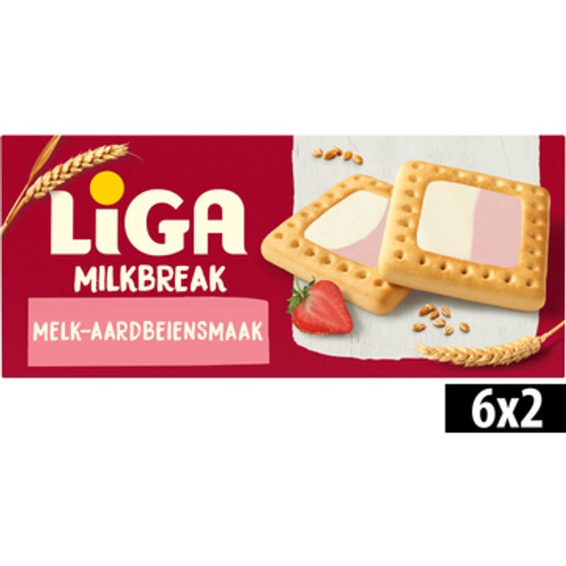 LiGA Milkbreak Koekjes Melk Aardbei 6 x 2 Stuks 245g