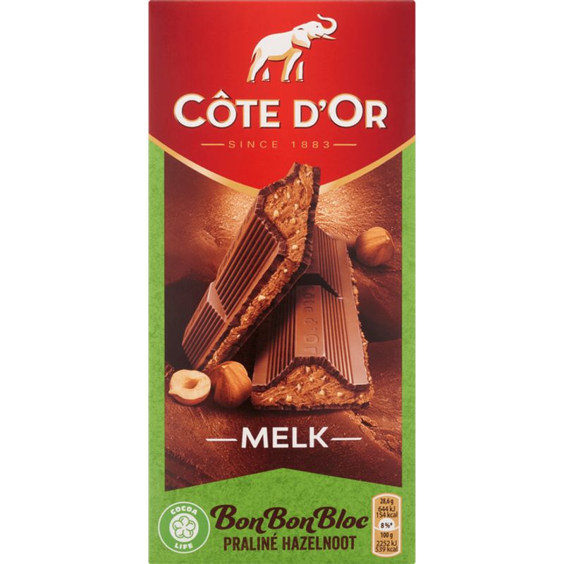 Côte d'Or BonBonBloc Chocoladereep Melk Praliné Hazelnoot 200g