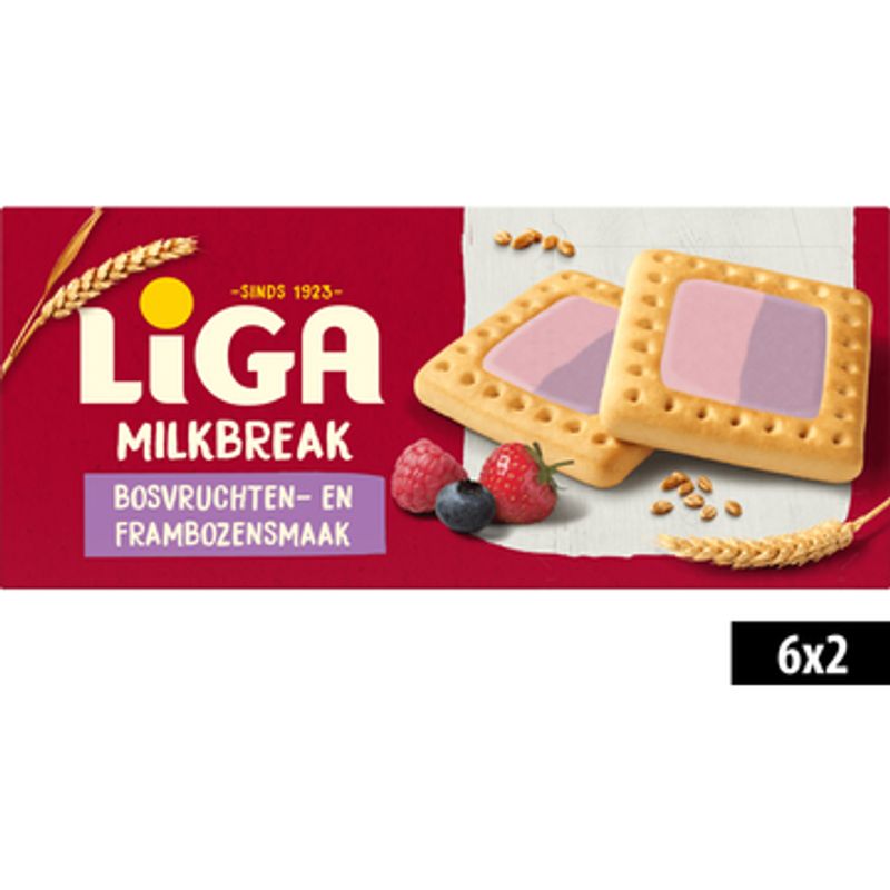 LiGA Milkbreak Koekjes Bosvruchten Framboos 6 x 2 Stuks 245g