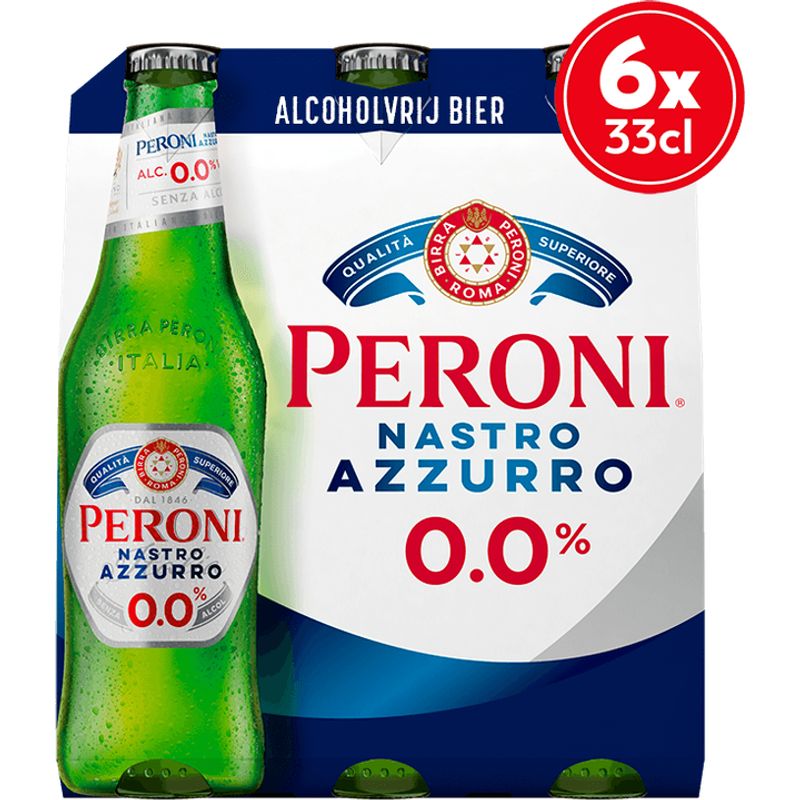 Peroni - Nastro Azzurro - 0,0% Alcoholvrij - Fles - 6 x 330ML