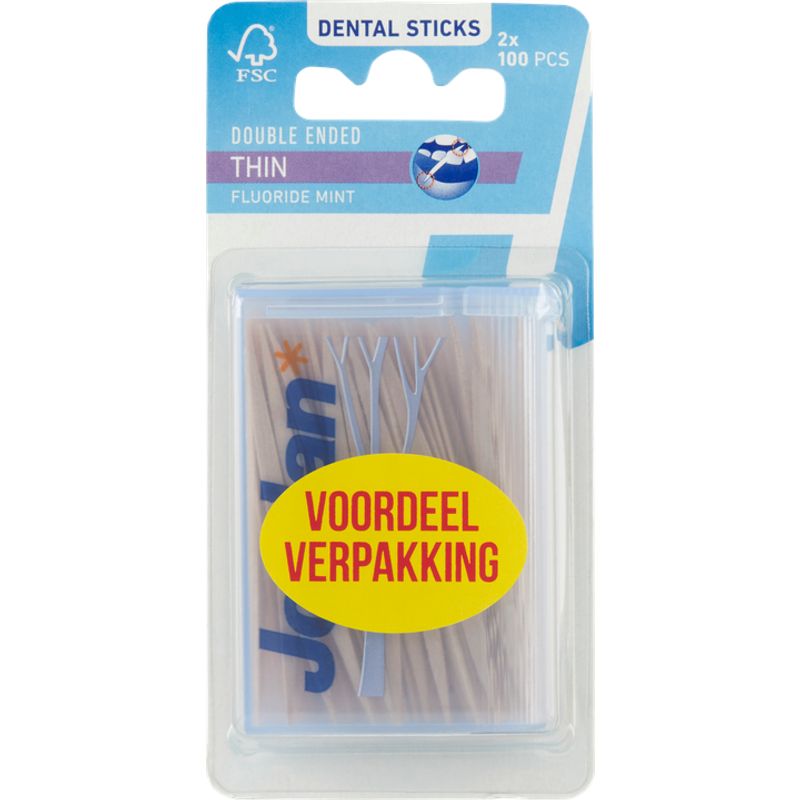Jordan Dental Sticks Thin Fluoride Mint 100 Stuks