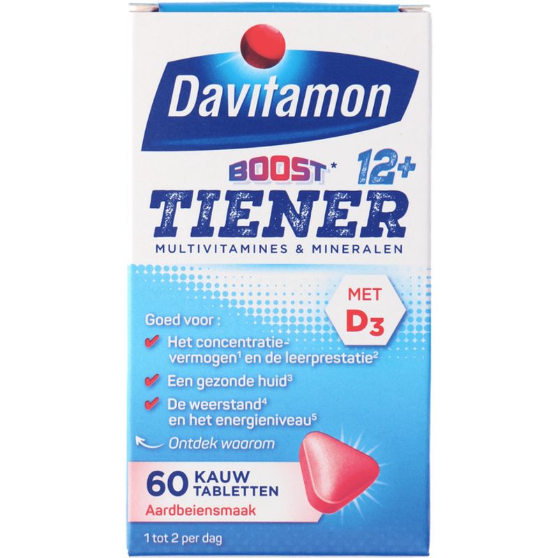 Davitamon Boost Tiener 12+ kauwvitamines aardbei, 60 stuks